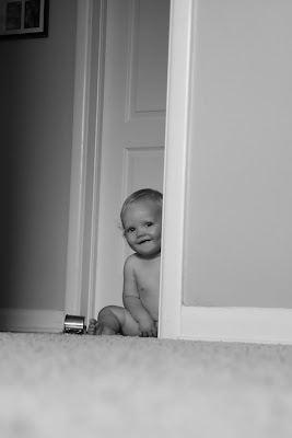 He's got a few curls in the back of his tow head. A few rolls and sweet dimples.